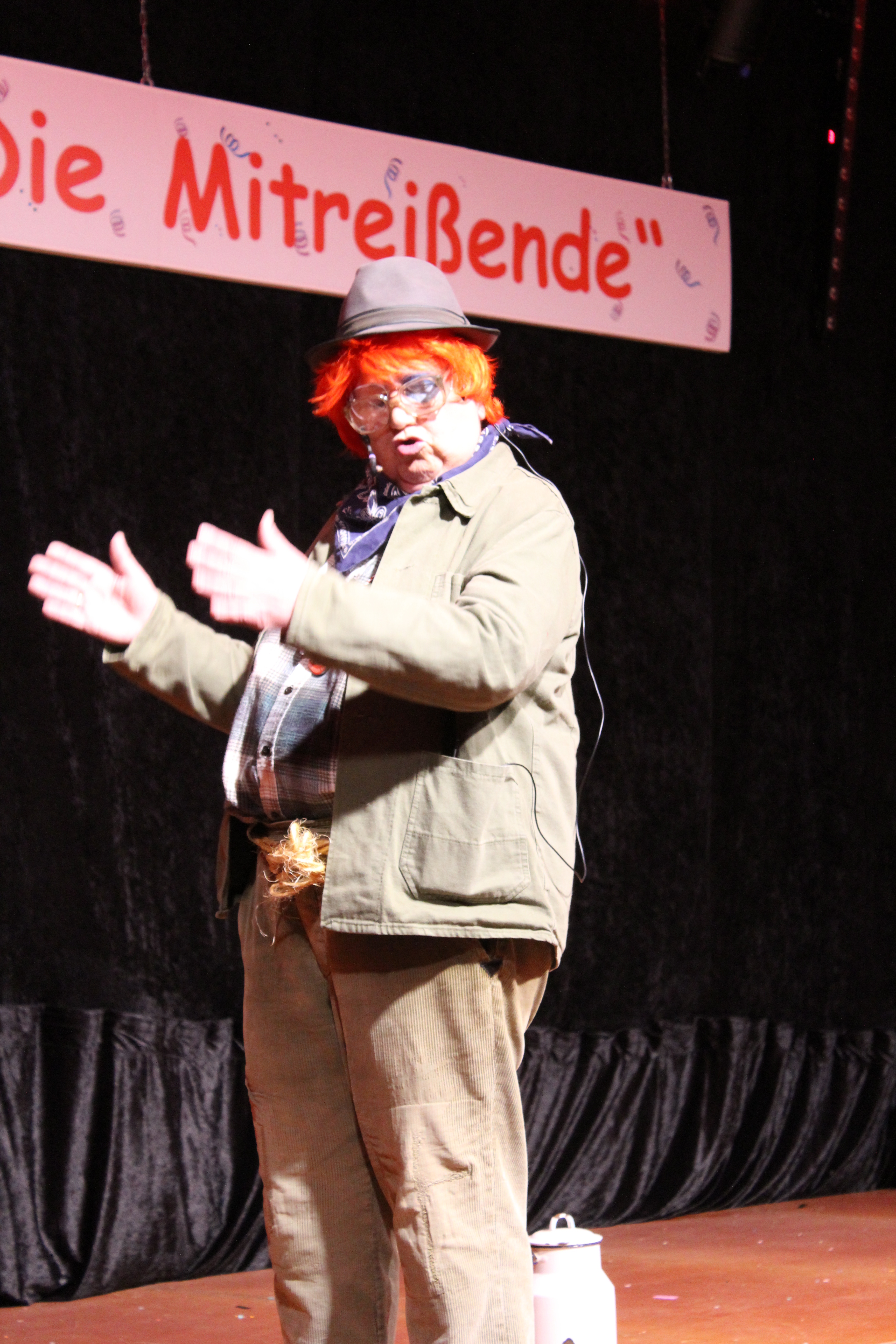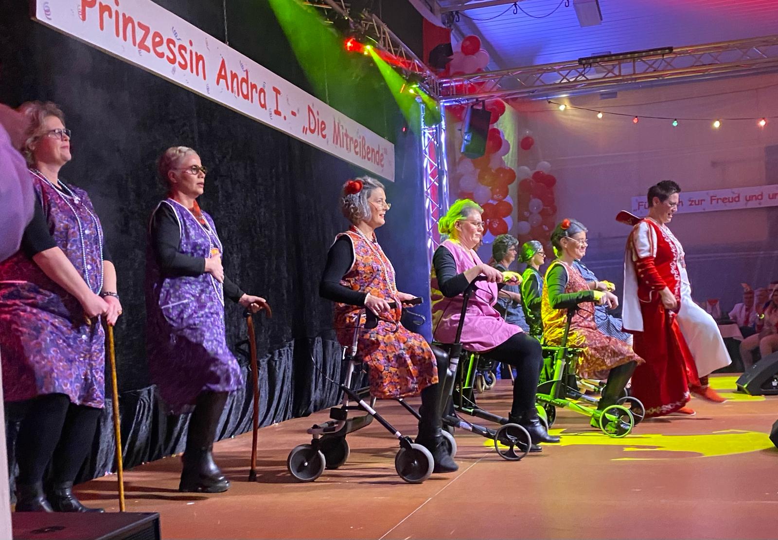 Nach der Pause heizten die Millinger Elfis mit “alles Käse – oder was“ dem Publikum ein und zusammen mit der Prinzessin Sandra II die Schnittige , welche von vielen Gästen als „die Dame hinter der Käsetheke“ gekannt wird, legten sie eine heiße Sohle auf den Arenaboden. Zum Abschluss durften die Millinger dann wieder Maria Ulrich begrüßen, welche als Bauer Hein Blöd Geschichten und Gags aus Millingen zum Besten gab. Zusammen mit Dagmar Gilles konnte Maria ihr 25-jähriges Bühnenjubiläum feiern. Ein großer Dank galt ihnen für ihr Engagement und die Freude welche sie stets auf die Bühne brachten. Leider möchte Hein Blöd nun in seinen wohlverdienten Ruhestand gehen und hat auch schon die Rente beantragt.