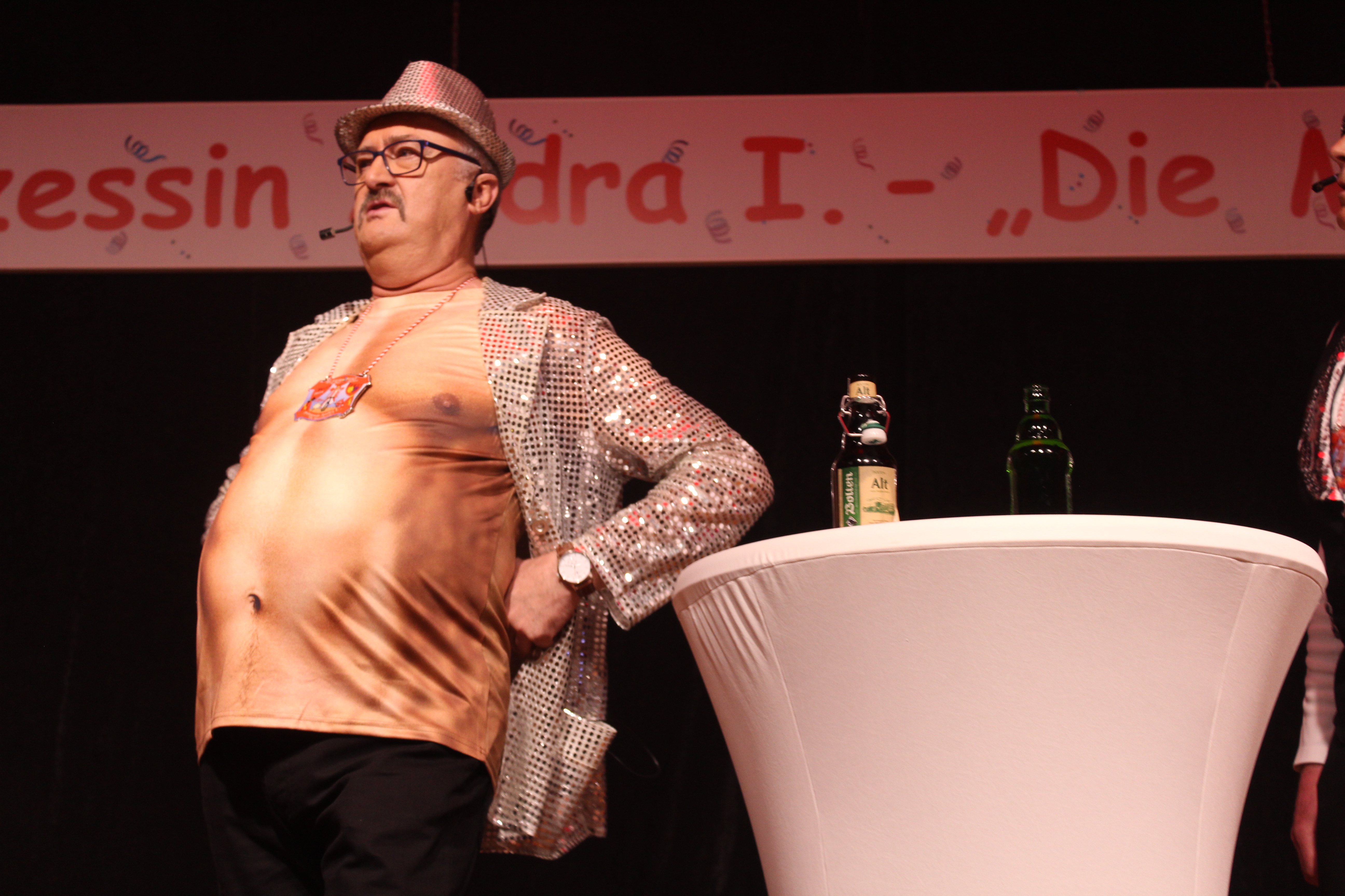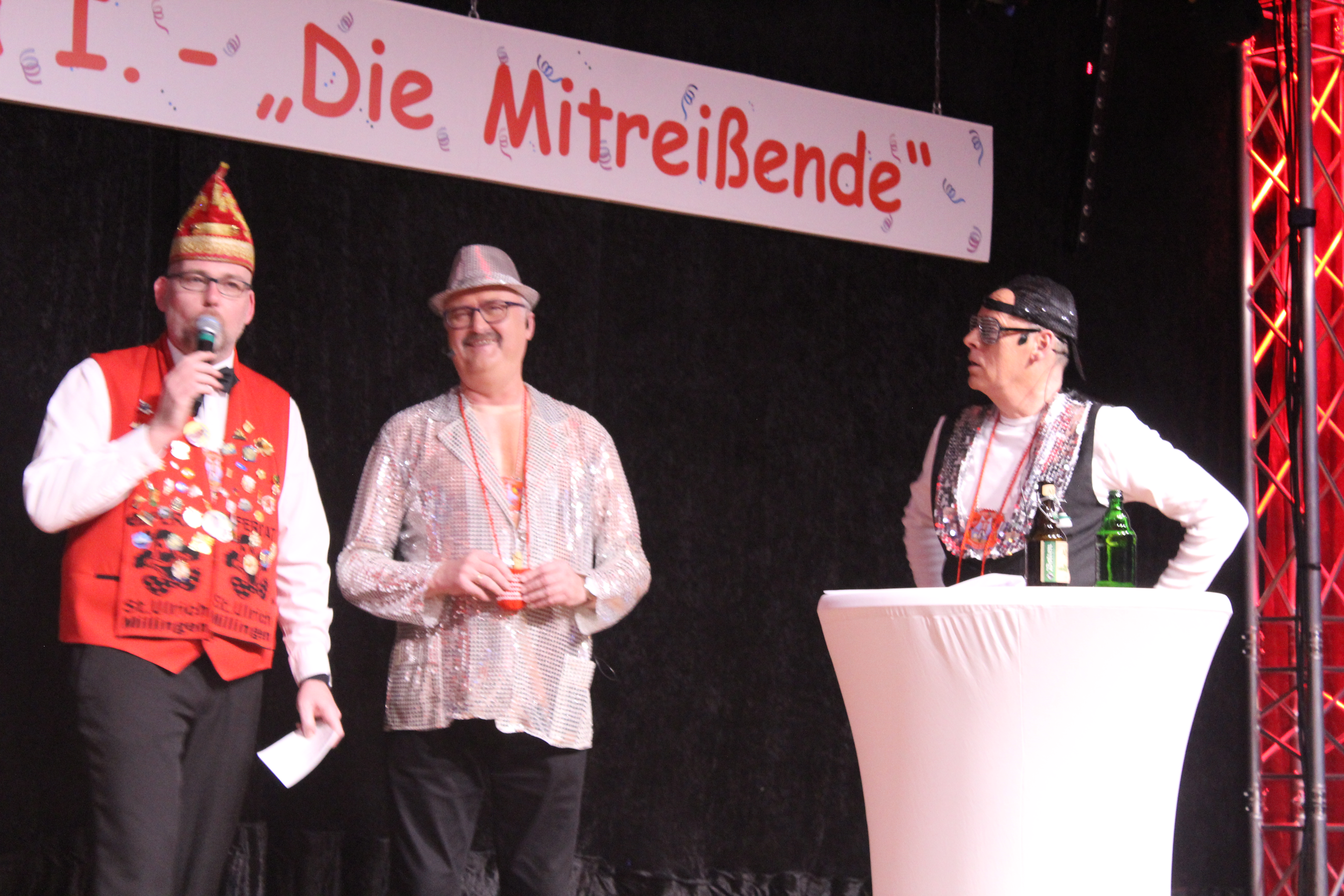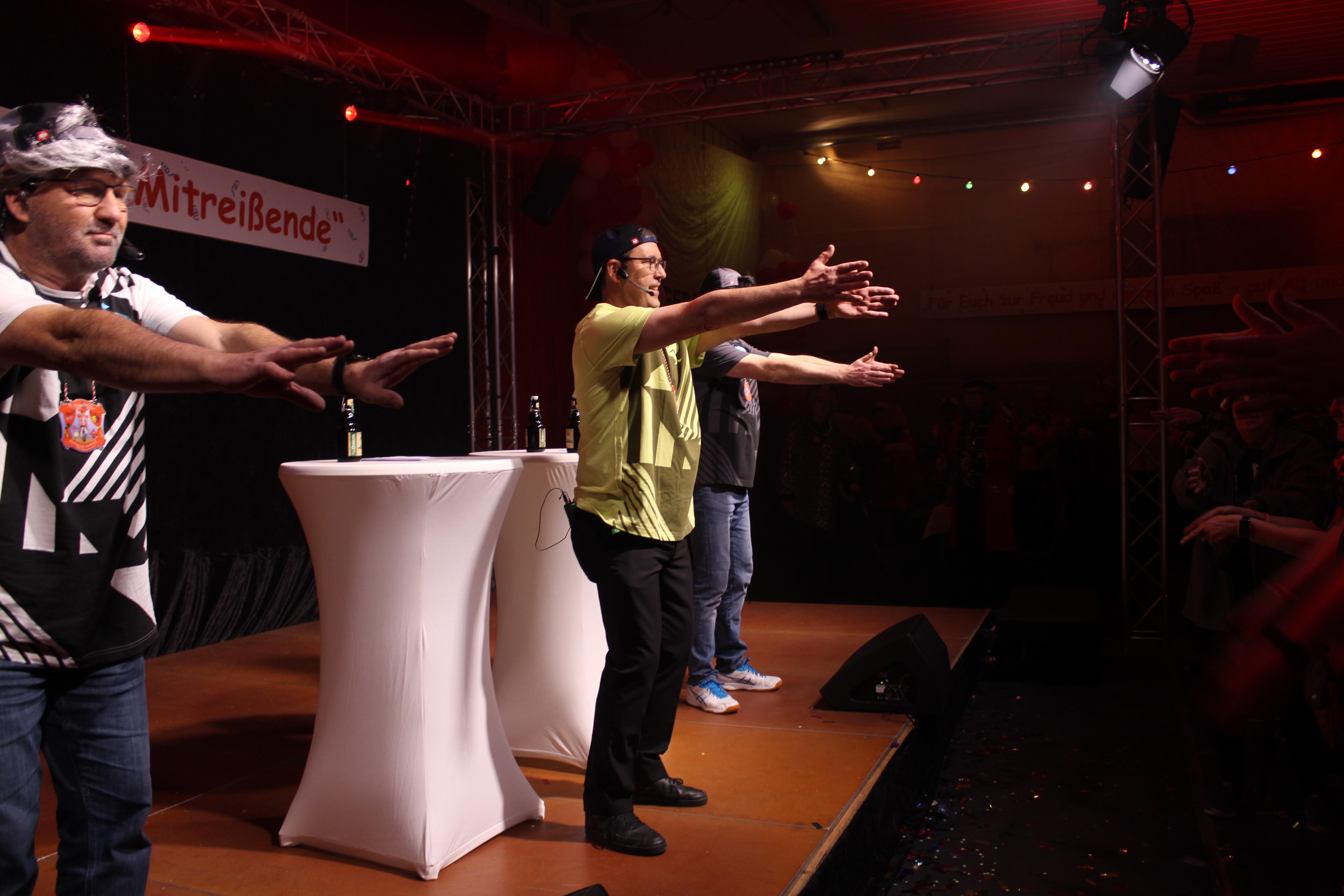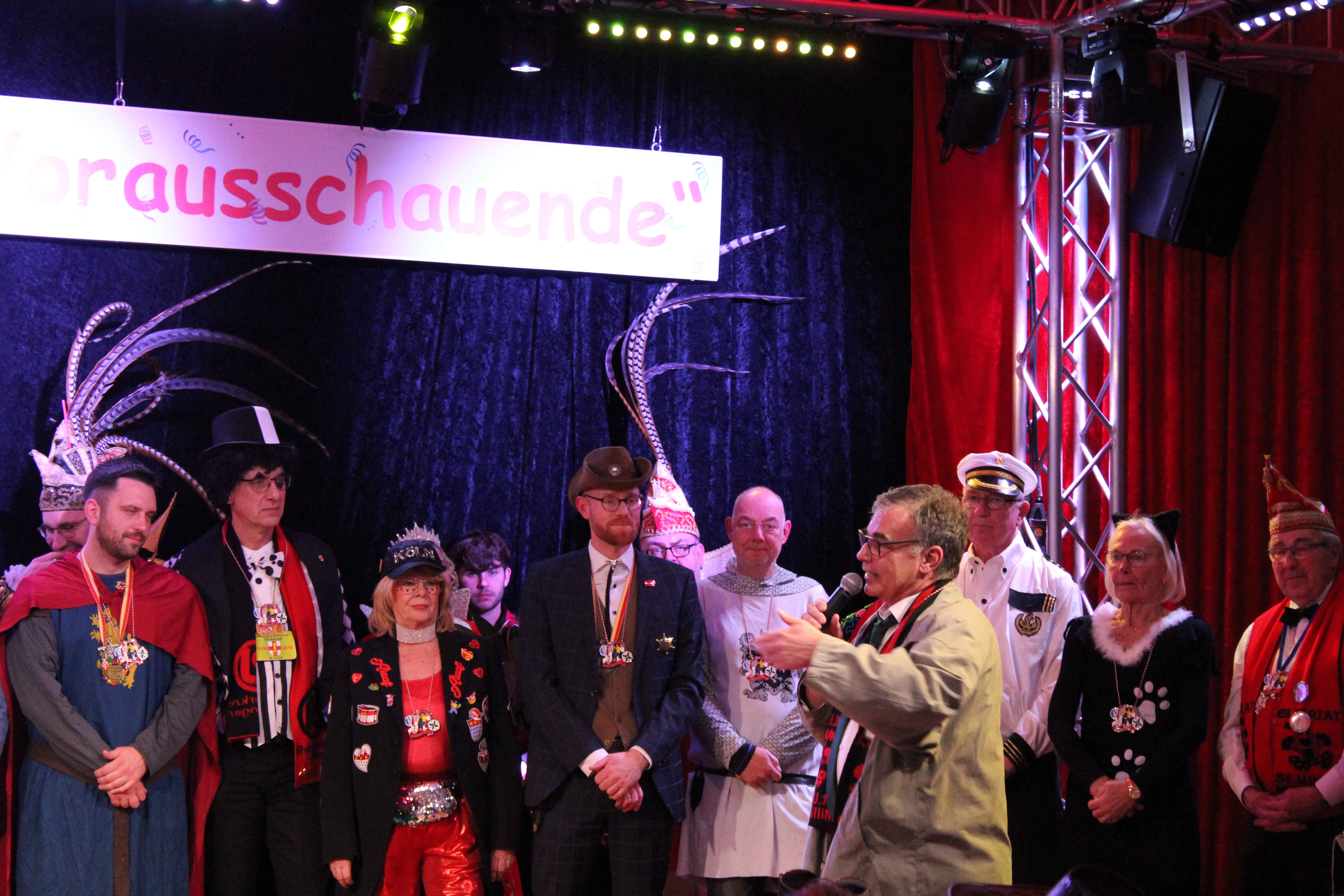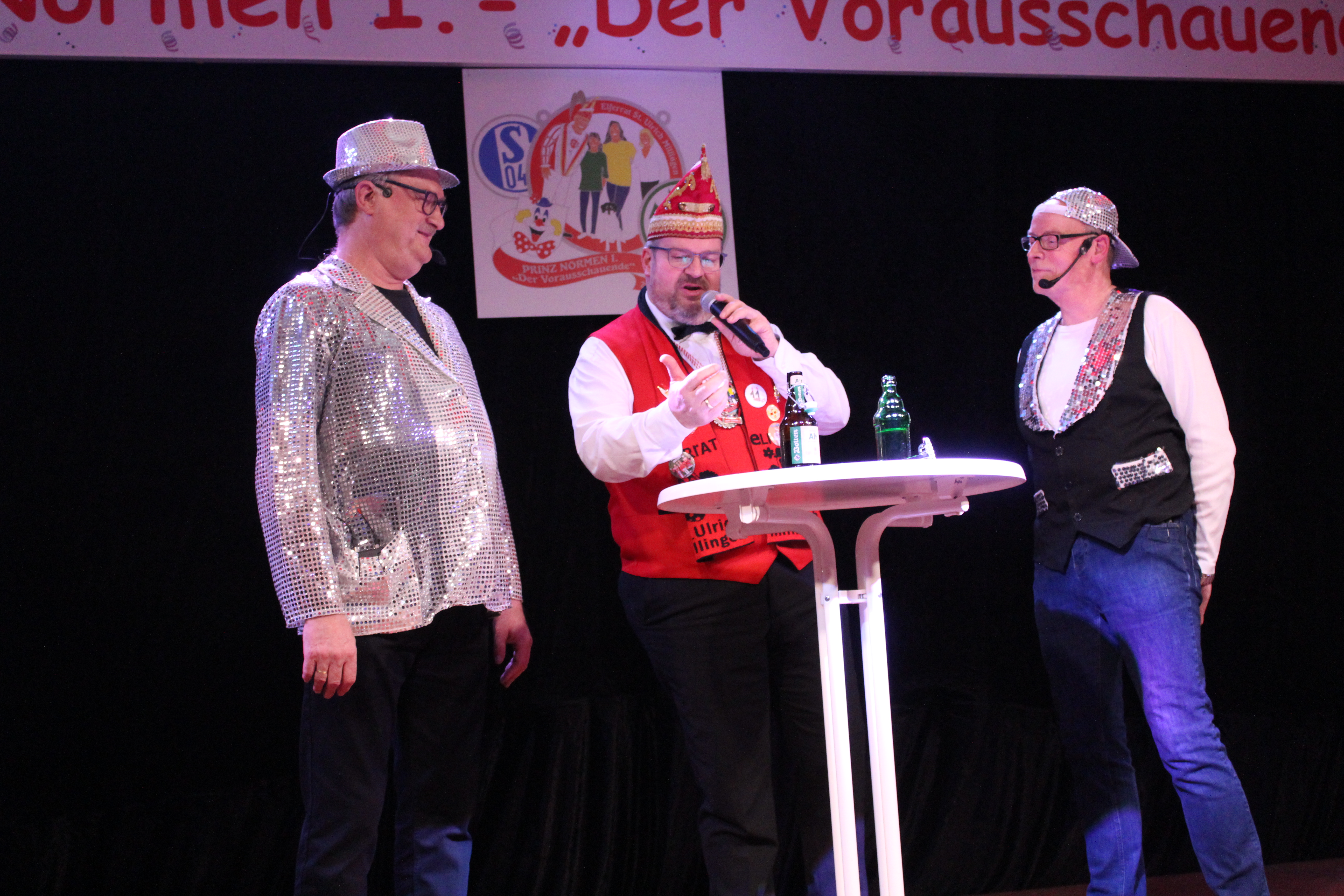 Als ungewollter Ruheständler eröffnet Mario Heinen den Reigen und erntet mit seiner gereimten, spitzfindigen Rede viel Applaus. Eine kleine Schaffenspause gönnten sich Thomas Coenen und Detlef Scholz, um in diesem Jahr wieder als „Bissig und Schön“ auf der Bühne zu stehen und sich einen bissigen, teils schlüpfrigen Schlagabtausch zu liefern.