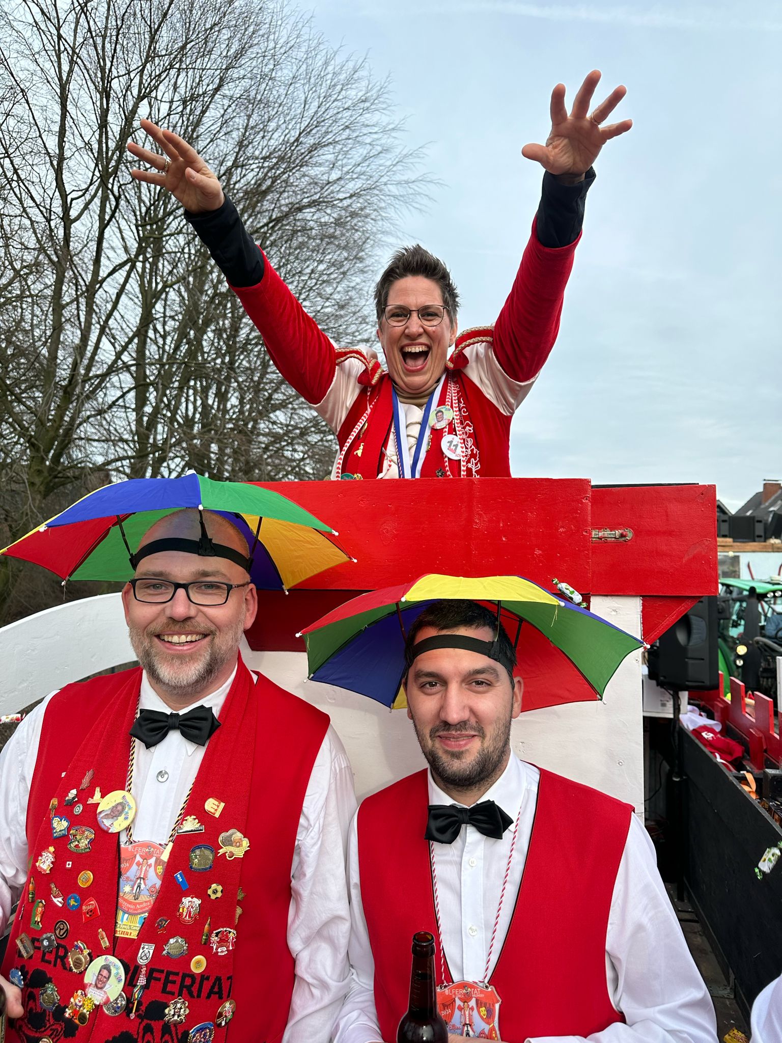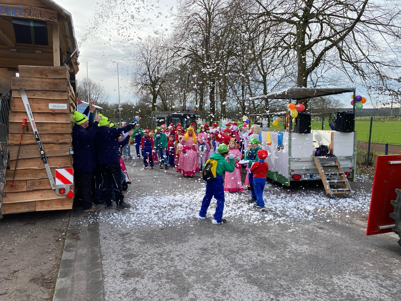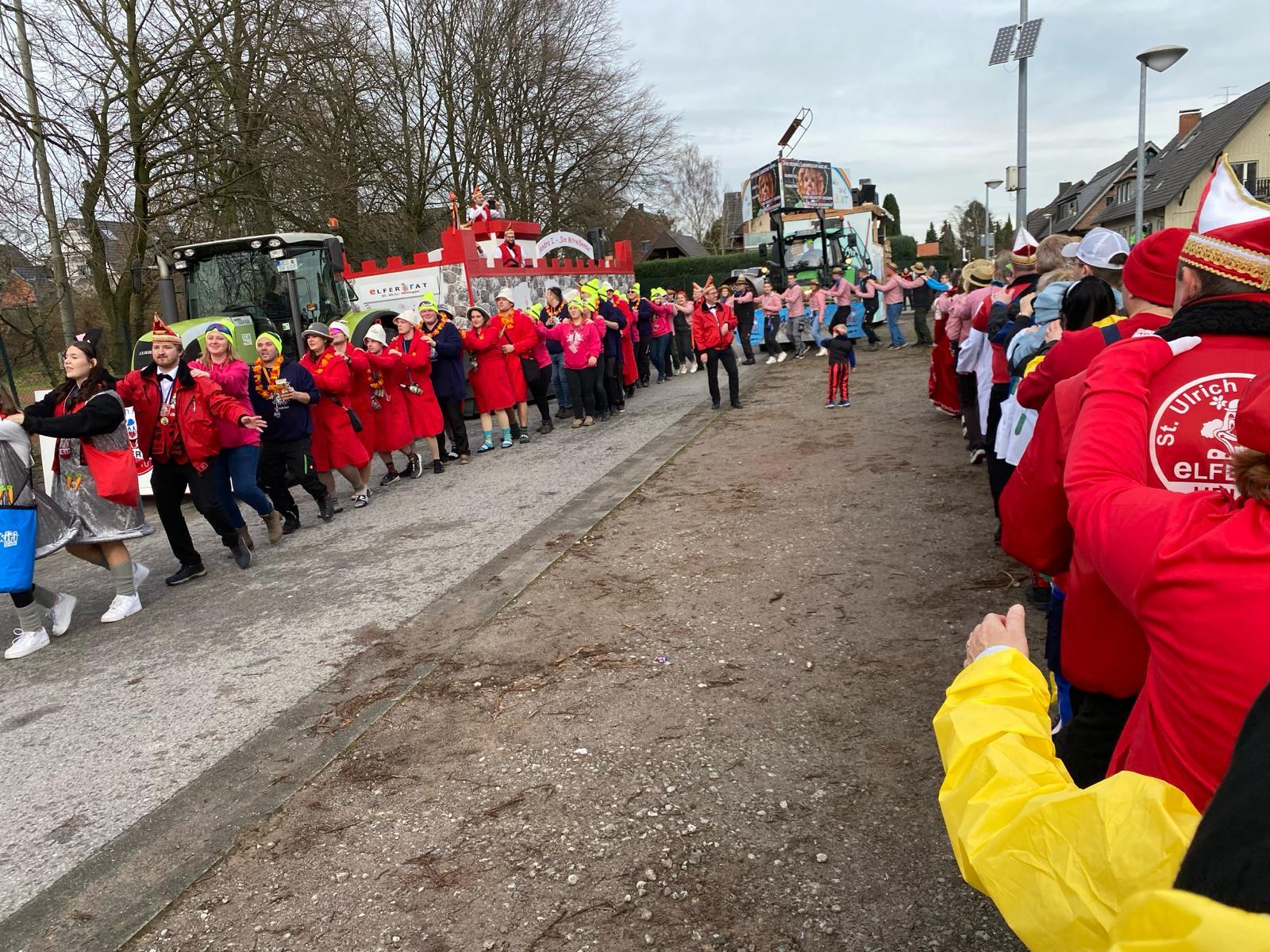 Doch! Denn an den Pumpennachbarschaften "op Spandicks Eck" und "Am Hügel" wurde eine kurze Pause eingelegt, um sich mit Polonese und Macarena aufzuwärmen. Natürlich durfte auch ein geselliges Gläschen nicht fehlen. Insgesamt war der Karnevalsumzug in Millingen ein großer Erfolg. Es wurden viele Kamelle geworfen und die Kinder füllten ihre Taschen randvoll mit Süßigkeiten und mehr. Die tolle Atmosphäre, die toll verkleideten Jecken und die ausgelassenen feiernden Nachbarschaften sorgten für ein wundervolles Erlebnis. Auch das schlechte Wetter konnte die Stimmung nicht trüben. Die Besucher waren begeistert und freuen sich schon auf den nächsten Karnevalsumzug in Millingen.