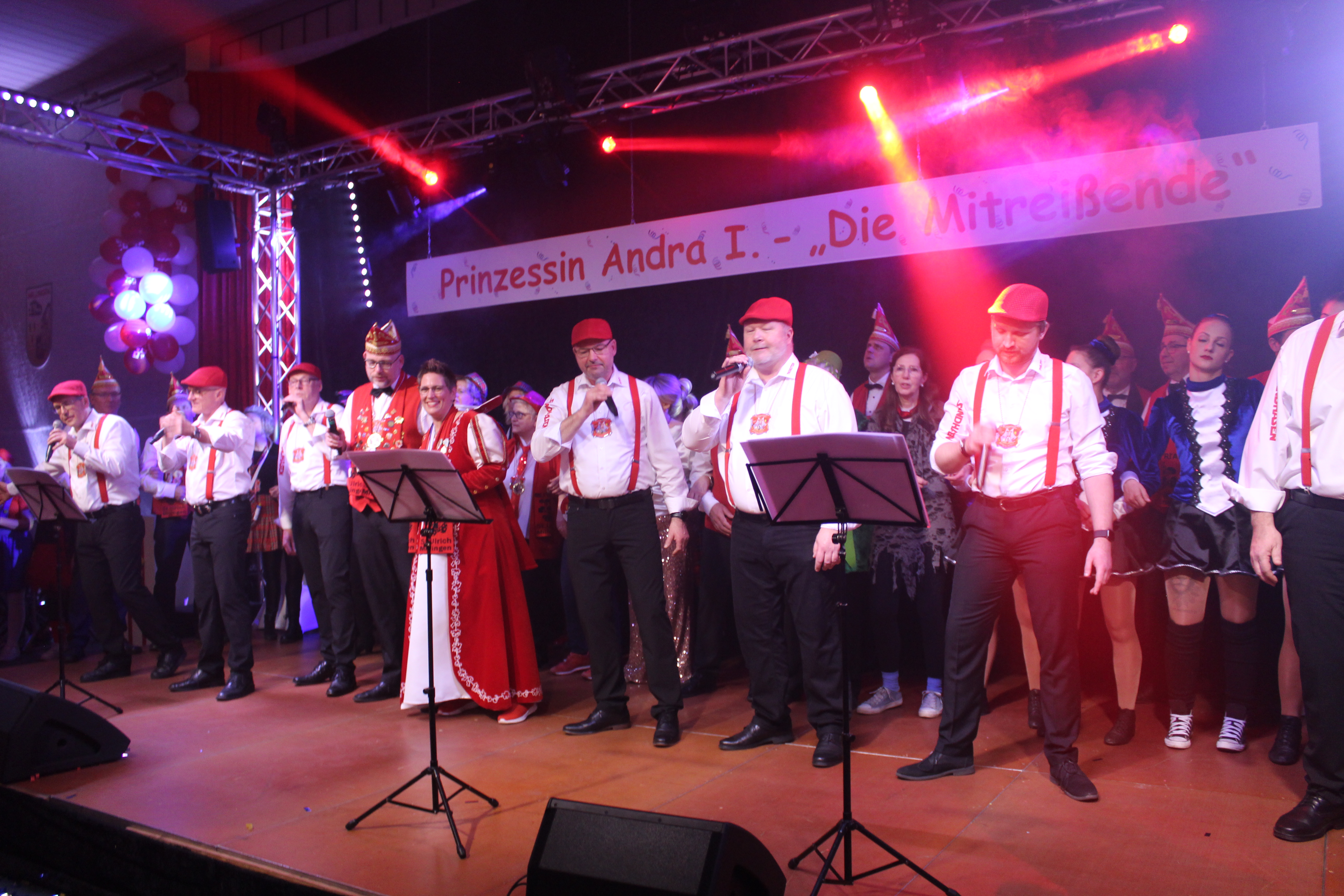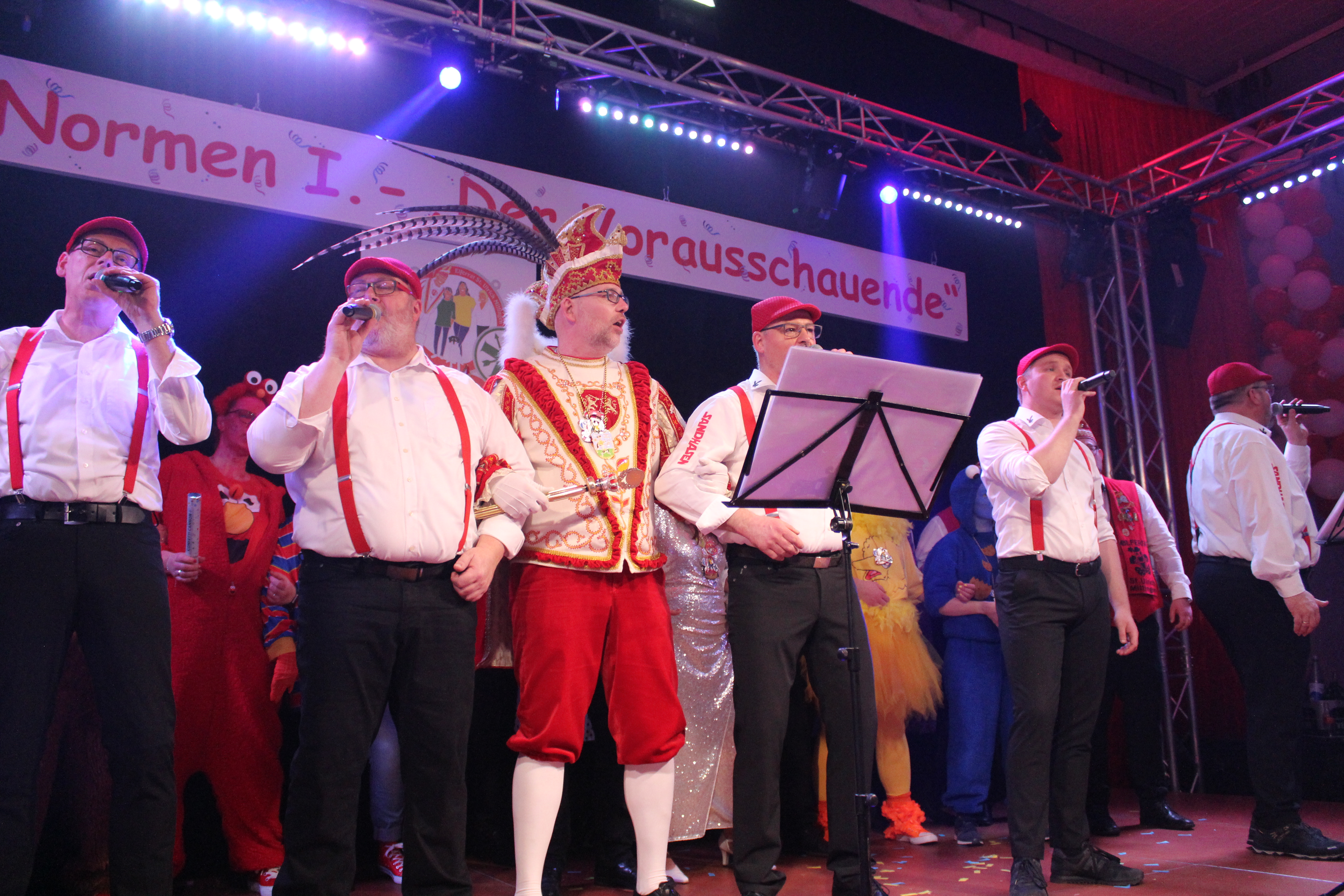 Zum großen Finale stimmten die Sandhasen kölsche Lieder an und Prinzessin Sandra, der Elferrat und alle Aktiven verabschiedeten sich Arm in Arm von der Bühne und feierten noch kräftig mit den Gästen in der schön geschmückten Festhalle weiter.