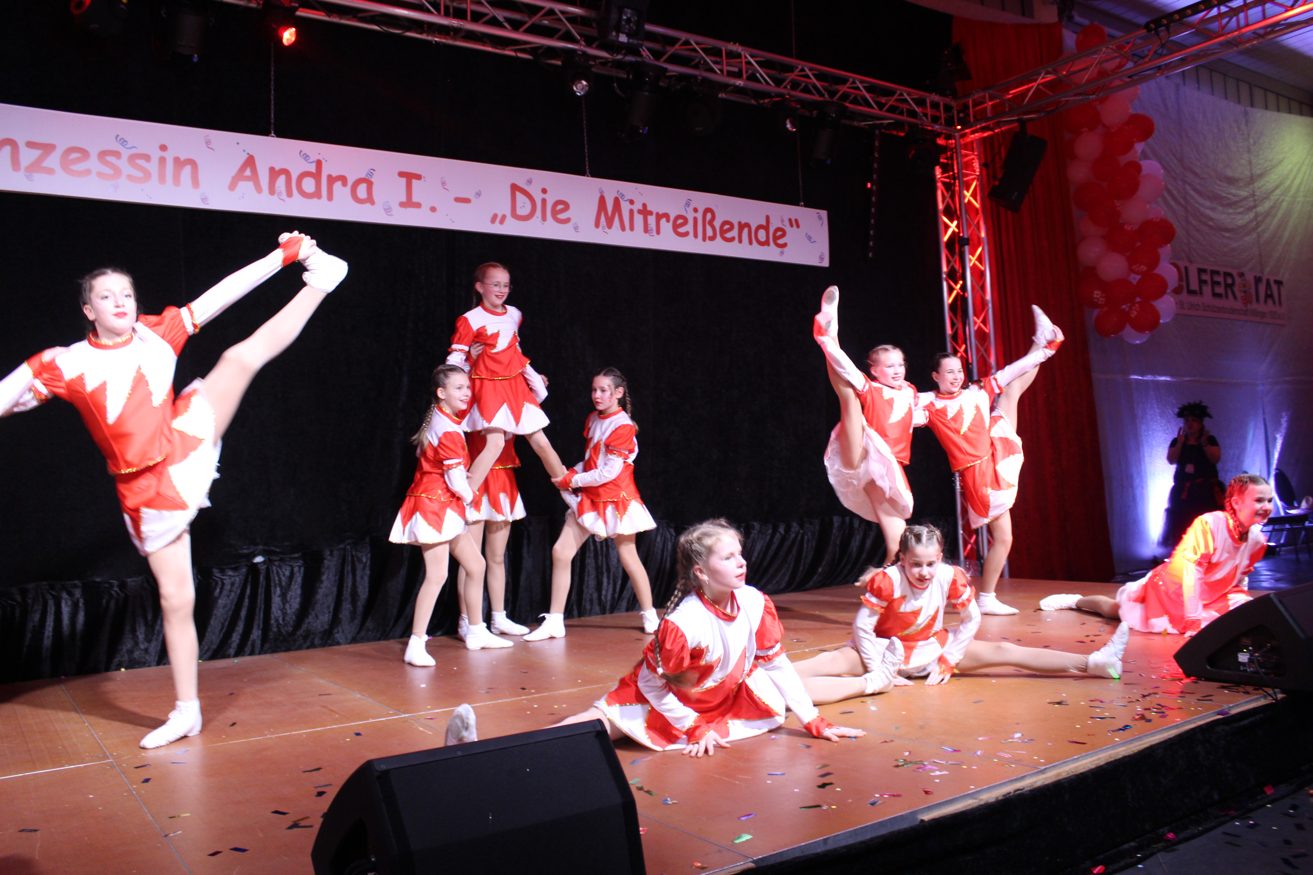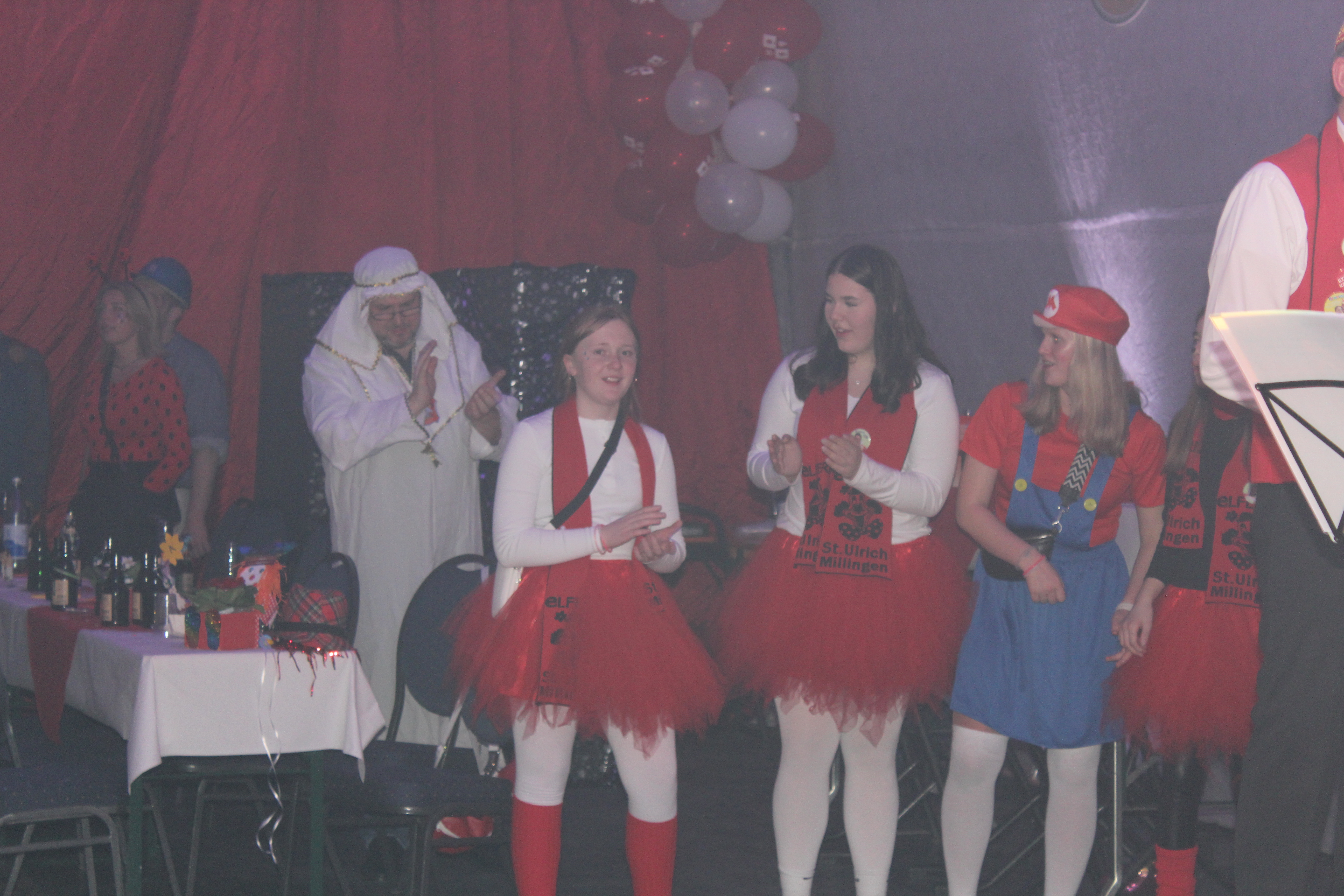 Nach der Pause heizten dann die ärmen Dollen als Dorfkinder dem Saal ein und fanden bei gymnastischen Übungen viele Fans, vor allem natürlich unter der Dorfjugend!!! So ist das halt in Millingen: Hier feiert Alt und Jung- Ärm in Ärm. Auf den Punkt brachten es schließlich die Millinger Elfies mit ihrem Showtanz. So wurde innerhalb von 5 Minuten aus alten Weibern mit Eierlikör und Weh-Wehchen, eine Brings-Rock-Tanztruppe mit Prinzessin vorweg. So ein Eierlikörchen wirkt manchmal Wunder!