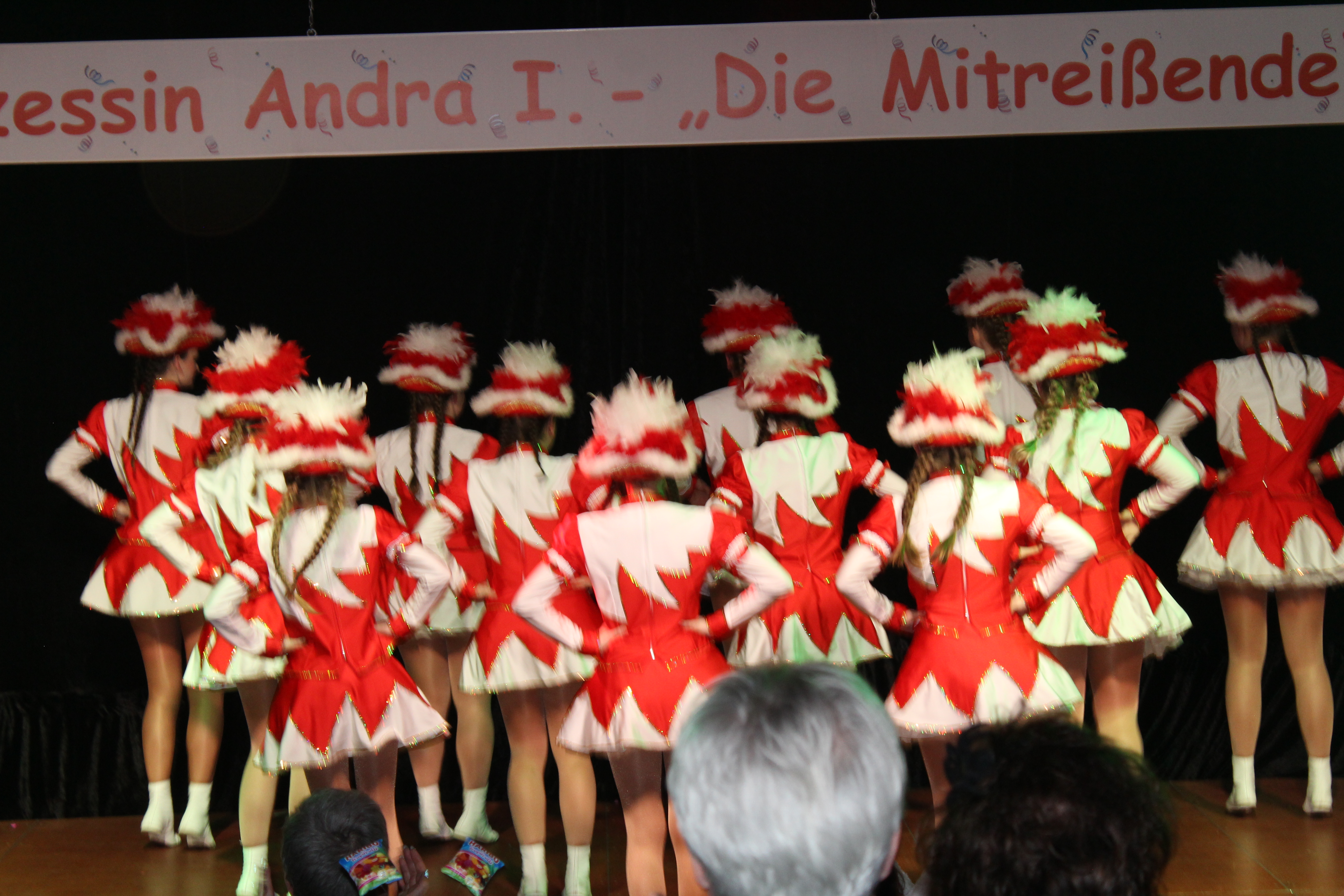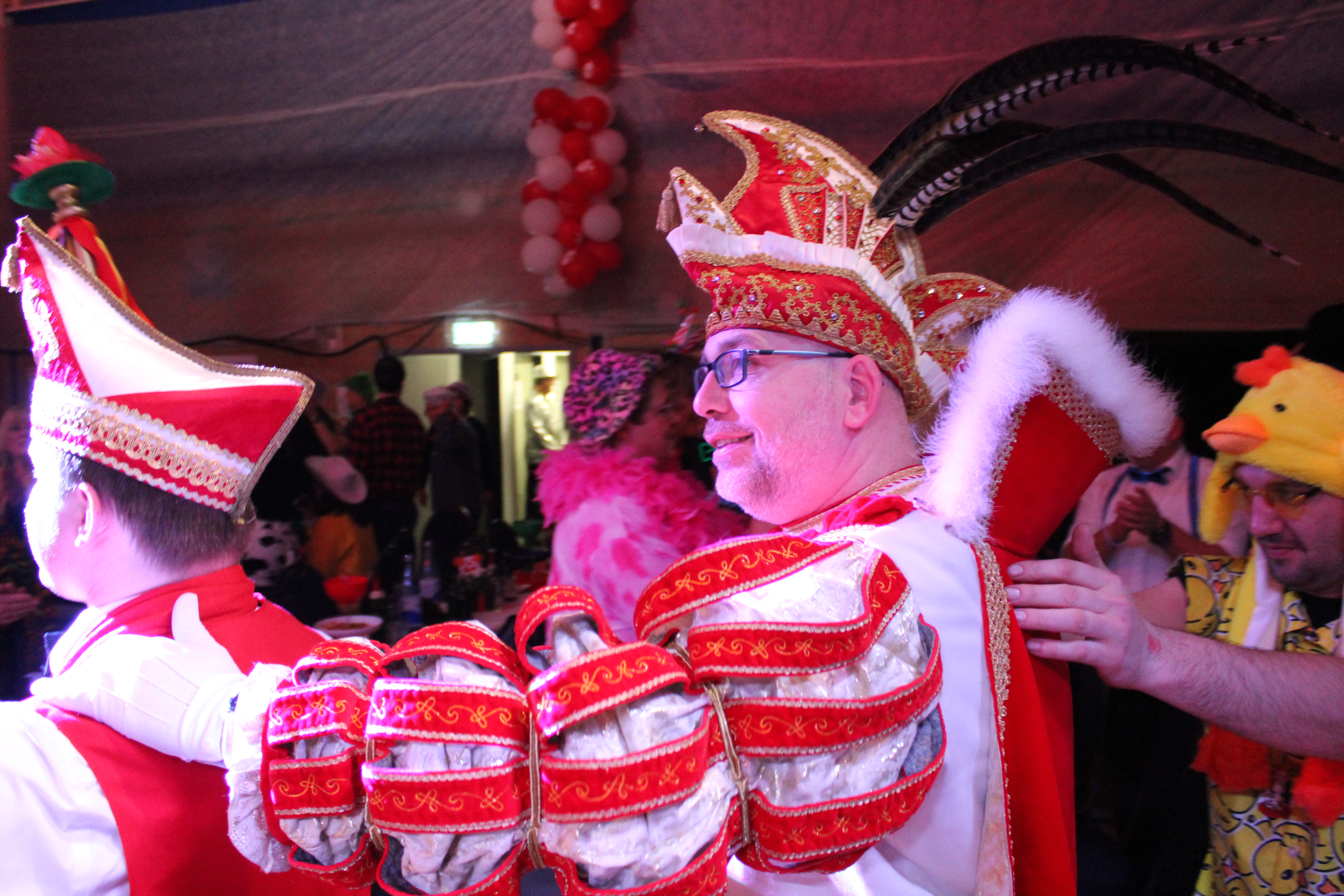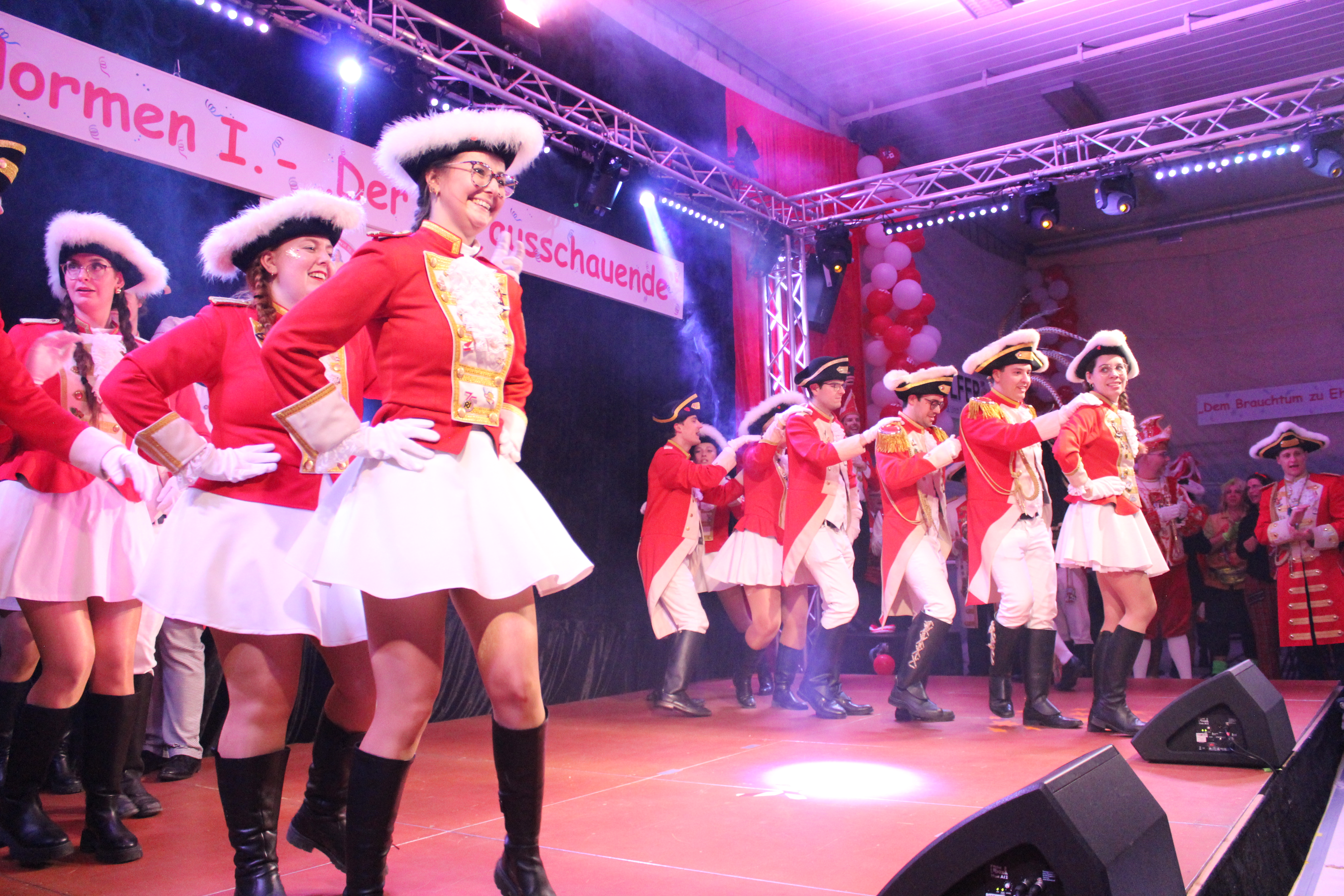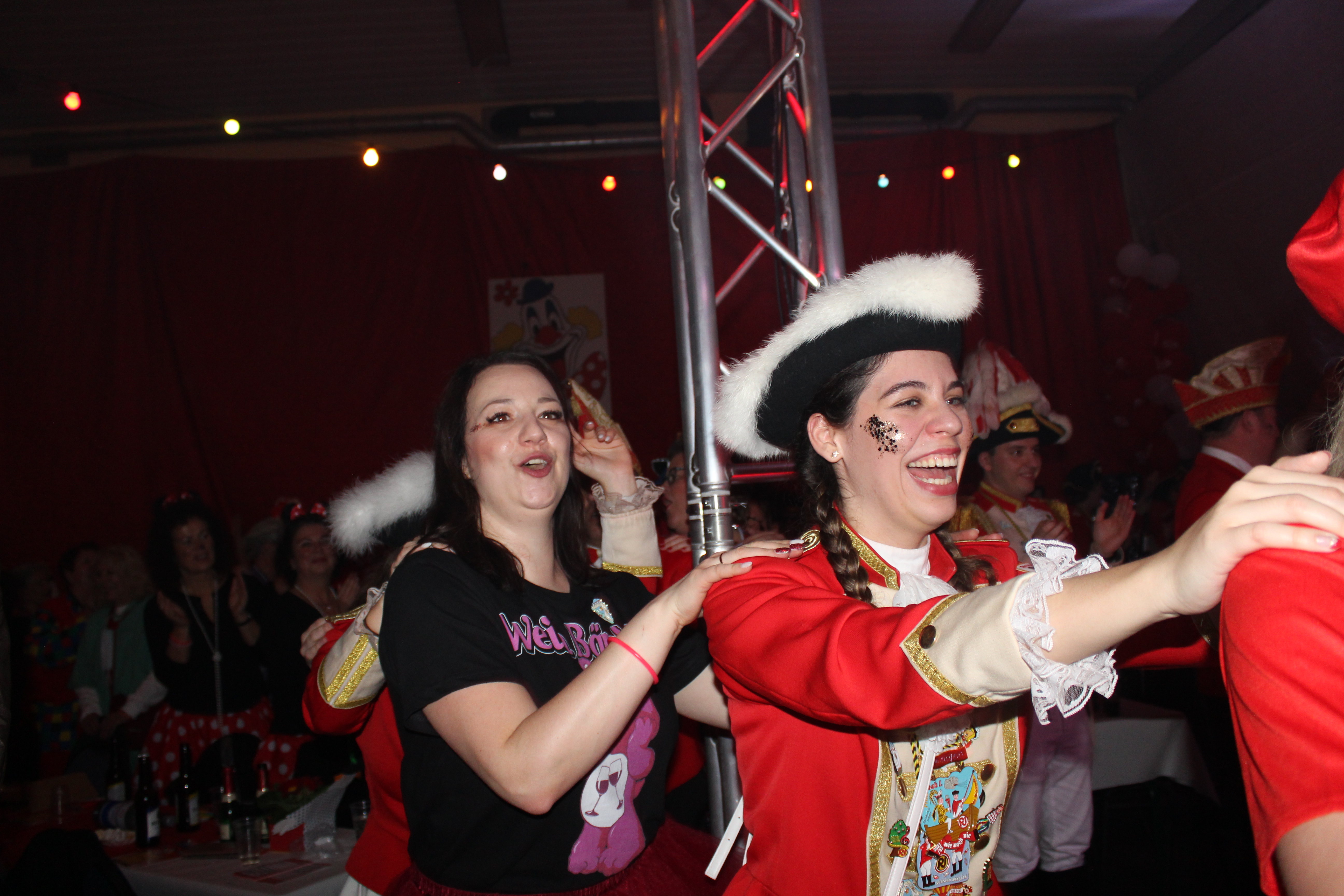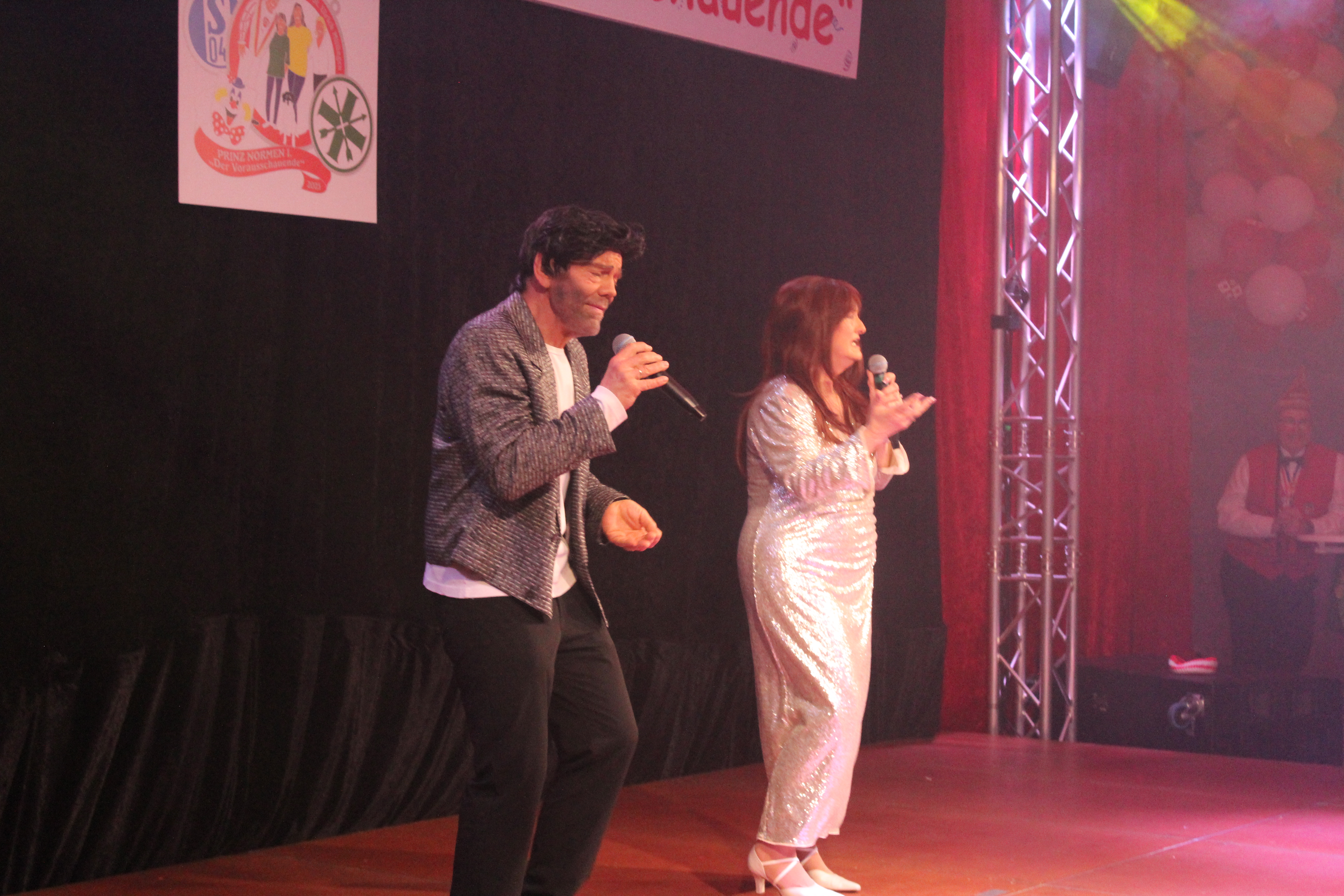 Zum Schwofen und Mitsingen luden schließlich Beatrice Egli und Florian Silbereisen alias Dagmar und Thomas Gilles die Feierlustigen ein. Auch viele befreundete Vereine, wie der Karnevalszugverein Oppum mit der Prinzengarde, das 1. OKK und die Rhinbergsen Jonges waren zu Gast und trugen mit ihren Garden zum bunten Programm der närrischen Arena bei.