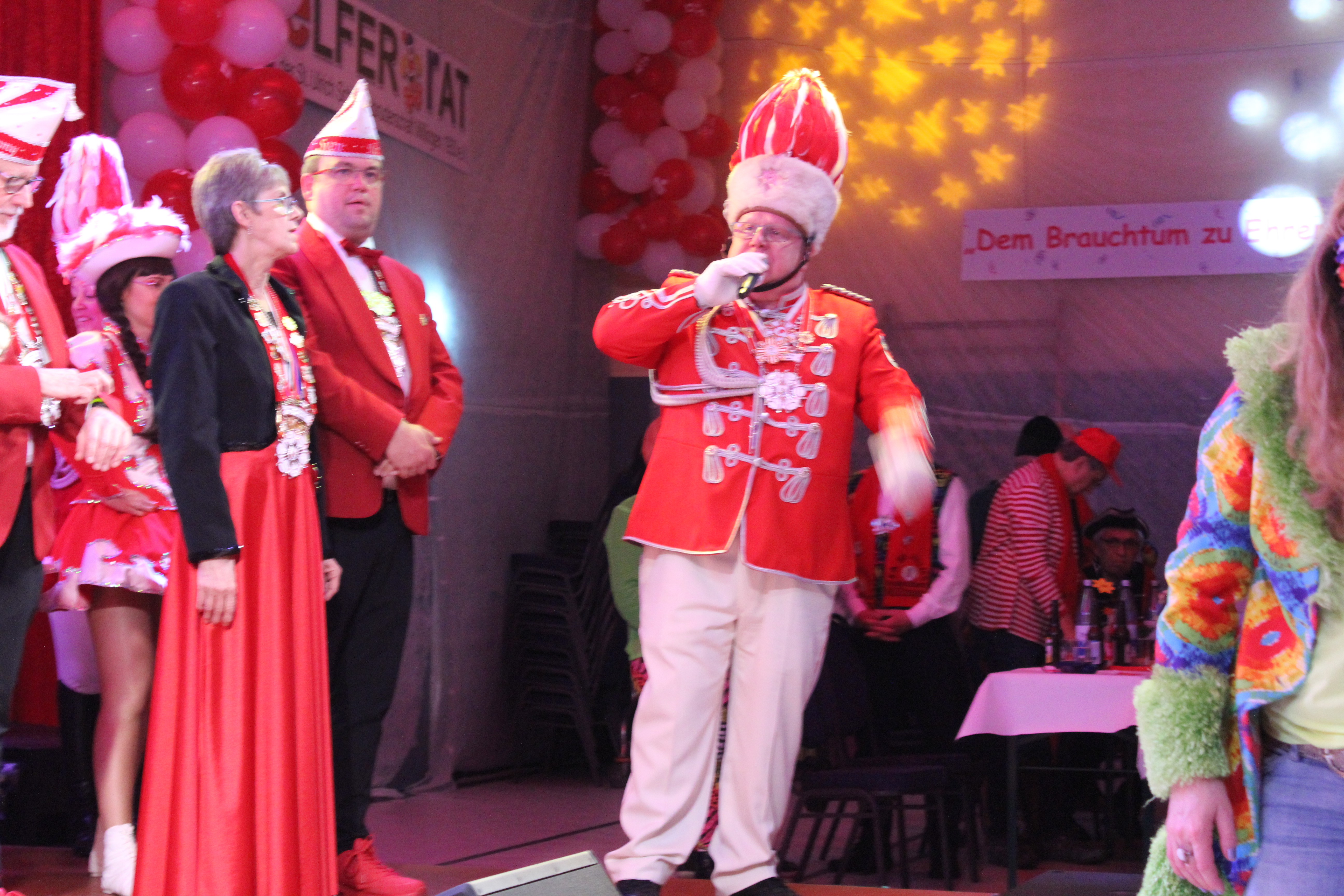 Ein Feuerwerk an Witzen schleuderte Paul van Holt seinem Publikum entgegen und das Facility Management-Duo Petra Heinen als pfälzische Klofrau und Normen Grobitsch als sächsischer Hausmeister lamentierten über ihr schweres Schicksal. Schließlich ist nichts mehr wie es war und der Elferrat hat sie zudem noch entlassen. Bedauernswert!